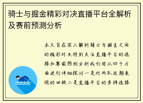 在NBA的赛场上,独行侠与太阳的对决无疑是一场备受瞩目的精彩比赛。两支球队都有着各自强大的阵容和独特的战术风格,让人们对于这场较量充满期待。独行侠以其灵活多变的进攻和稳健的防守著称,而太阳则凭借快速的反击和精确的三分投射占据一席之地。本篇文章将从四个方面详细探讨这两队之间的激烈对决,包括球队背景、关键球员、战术分析以及比赛展望,旨在给读者呈现出一个全面而深刻的篮球赛事解读。在这样一场较量中,究竟谁...